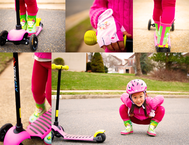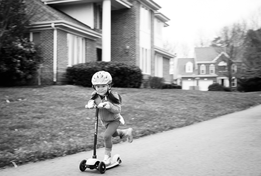 Bump…bump…bump. Faster and faster becoming a blur of pink, kind of. With helmet, gloves and Hello Kitty rain boots she’s invincible. After a few falls testing the edges nothing scares her now. Nothing in the security of our sidewalks and nearby cul-de-sac.