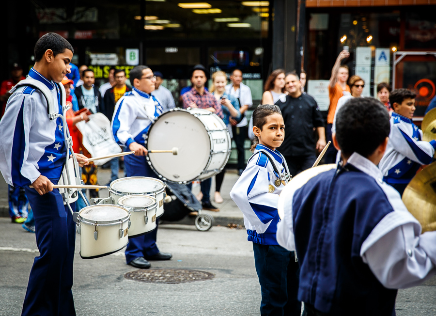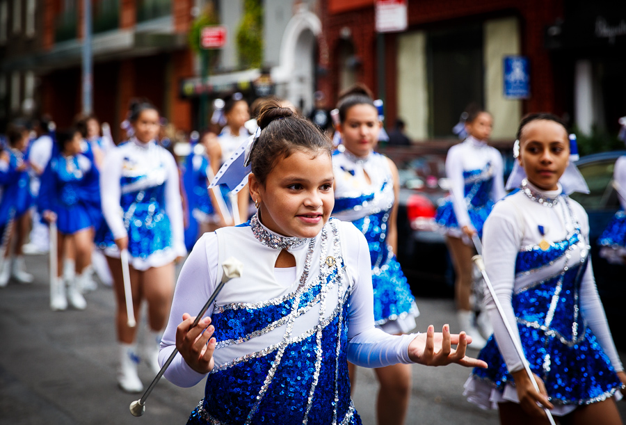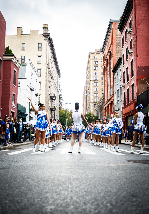 Years ago when I lived in New York City I bought a book called “America’s Idea of a Good Time”. The writer and photographer, Kate Schermerhorn, traveled the country to capture America’s idea of fun in her own pursuit to define happiness. A large portion of her photos were of parades. Fast forward ten years and I find myself in New York City, stumbling upon a parade. While this parade included glittery costumes, twirling batons, and a mean drum line generating a mean drum beat I wouldn’t say there was happiness. Why? Not a smile was to be found on any paraders face. Instead each young face showed focus, boredom, determination, nervousness, shyness or perhaps they were just “too cool” to smile. They loved this moment, it was plain to see in their apathetic expressions, parading down 8th Street between 5th and 6th Avenues and capturing the attention of a modest crowd of family, friends, passersby and enthusiastic children. Unwittingly adults were swaying hips, kids were dancing and clapping, parents were snapping photos and strangers shared smiles. When the parade wrapped, the paraders quickly broke formation and you could see and hear the giddiness and celebration that parades inspire. As quickly as the crowd formed the crowd dispersed like nothing had happened, just the lingering beat working its way through our feet.