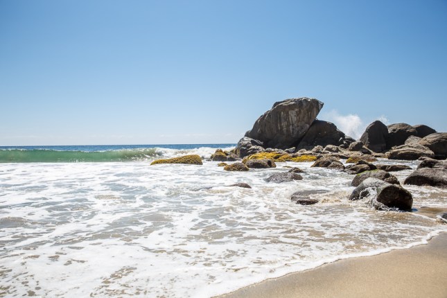 Past the cemetery on the left and Playa de los Muertos on the right a winding road which leads to a winding path takes you down to Carricitos beach. The impressive waves keep the crowds away.