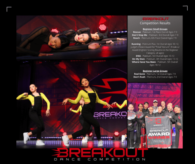 At Breakout the girls had a call time of 6am, in Baltimore. They hit the stage at 8am with their high-energy hip hop number, DNA, which noticeably changed the pace and energy in the auditorium. Their contemporary routine, Running, stole the show winning the Judge’s Award for Total Texture and overall Breakout Award for best routine in all categories and ages.